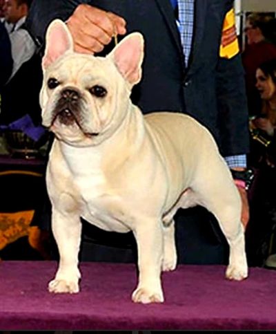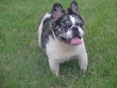 The skin is soft and loose, especially at the head and shoulders, forming wrinkles. Piedness is a recessive characteristic in French Bulldogs but is still relatively common (two pied dogs will produce only pied puppies, two pied carriers will produce 25% pied puppies, etc). A pied Frenchie is one that has a base coat of white with patches of a darker color which is brindled. Pied is a pattern and not a specific color but can come in all shades of standard colors. Standard colors are fawn, creme, red, white, and brindle (dark coloring with lighter hairs mixed in or the reverse) and are all acceptable colors in the AKC show ring.