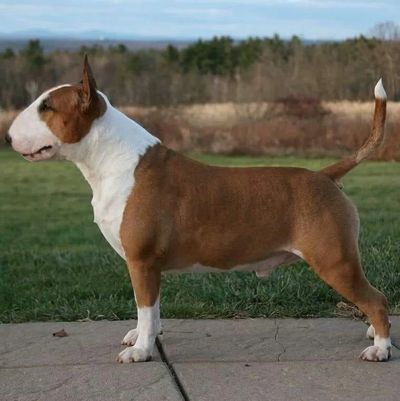 The Bull Terrier must be strongly built, muscular, symmetrical and active, with a keen, determined and intelligent expression, full of fire but of sweet disposition and amenable to discipline.